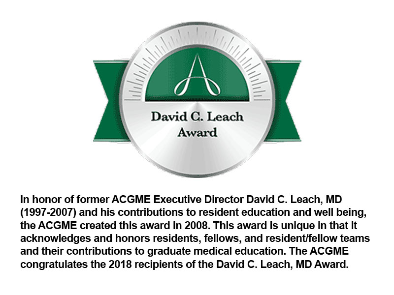 - • Received the national ACGME David C. Leach award for her work in developing the first resident continuity clinic in the country